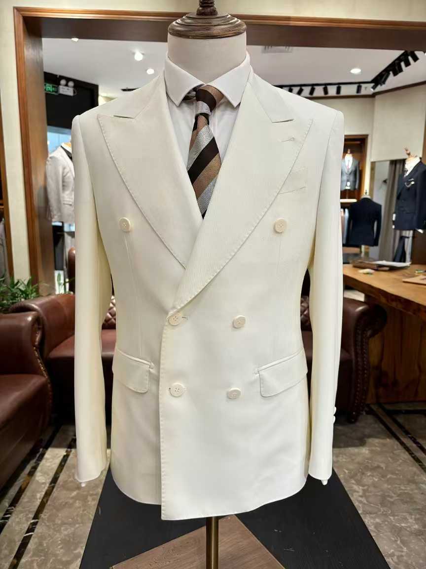 上品!オフホワイト タキシード ジャケット、ベスト、パンツの3点セット 色変更可能】