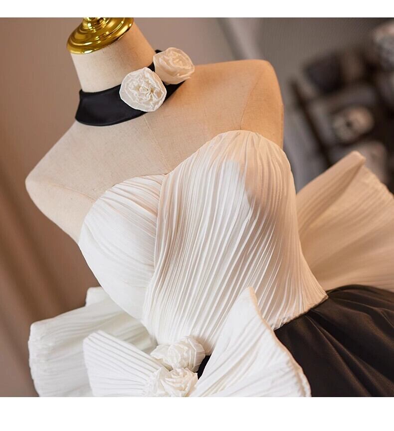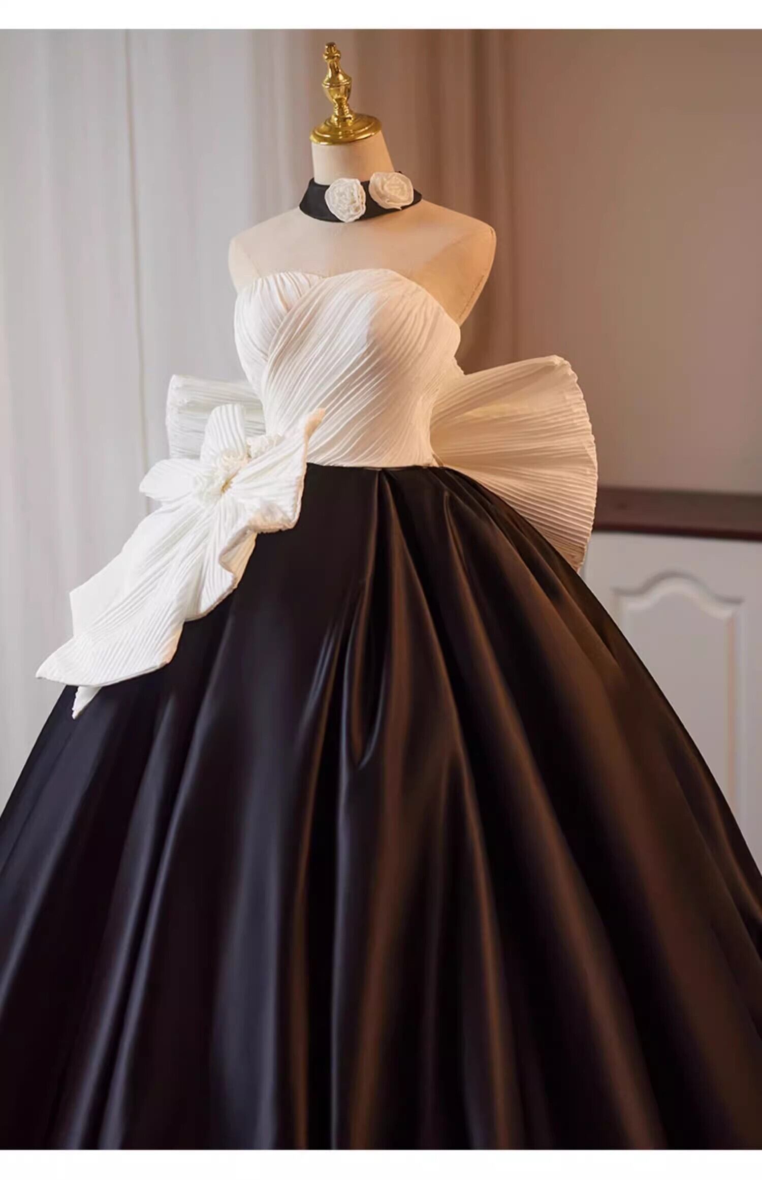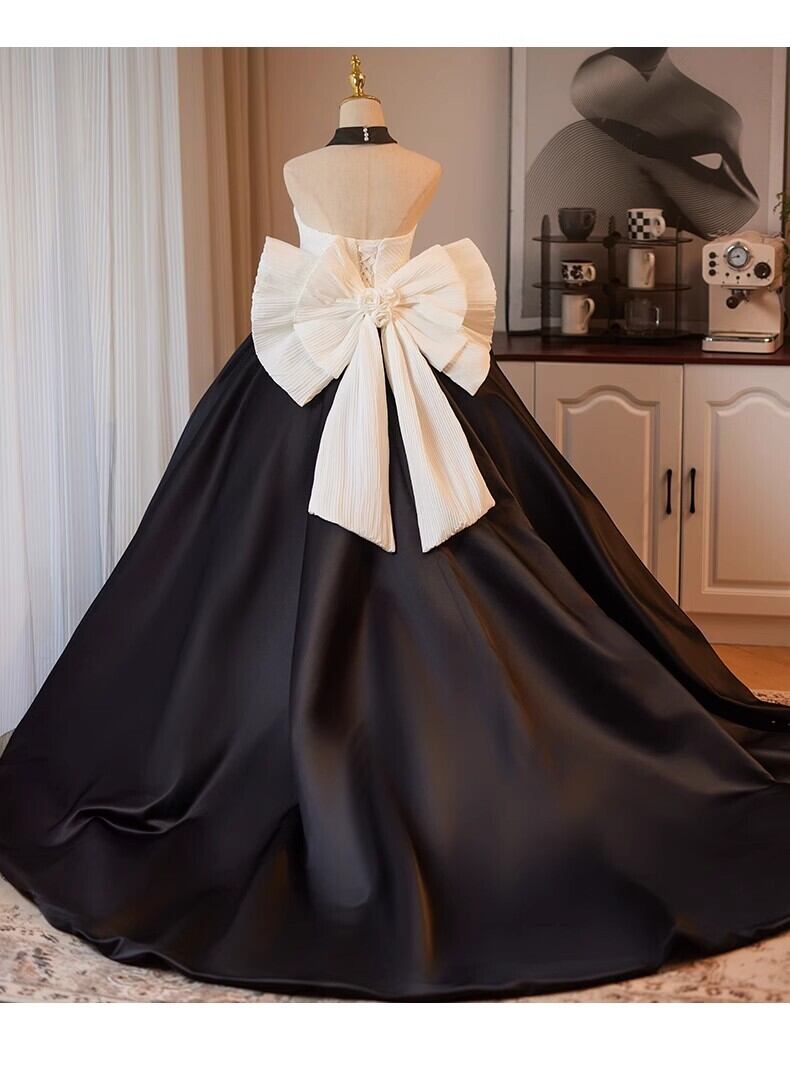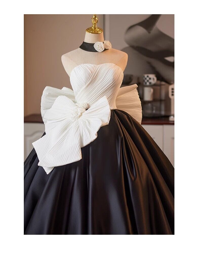 上品!2色 ベアトップ リボン カラードレス プリンセスライン フレアスカート 【色変更可能】ボリュームドレス