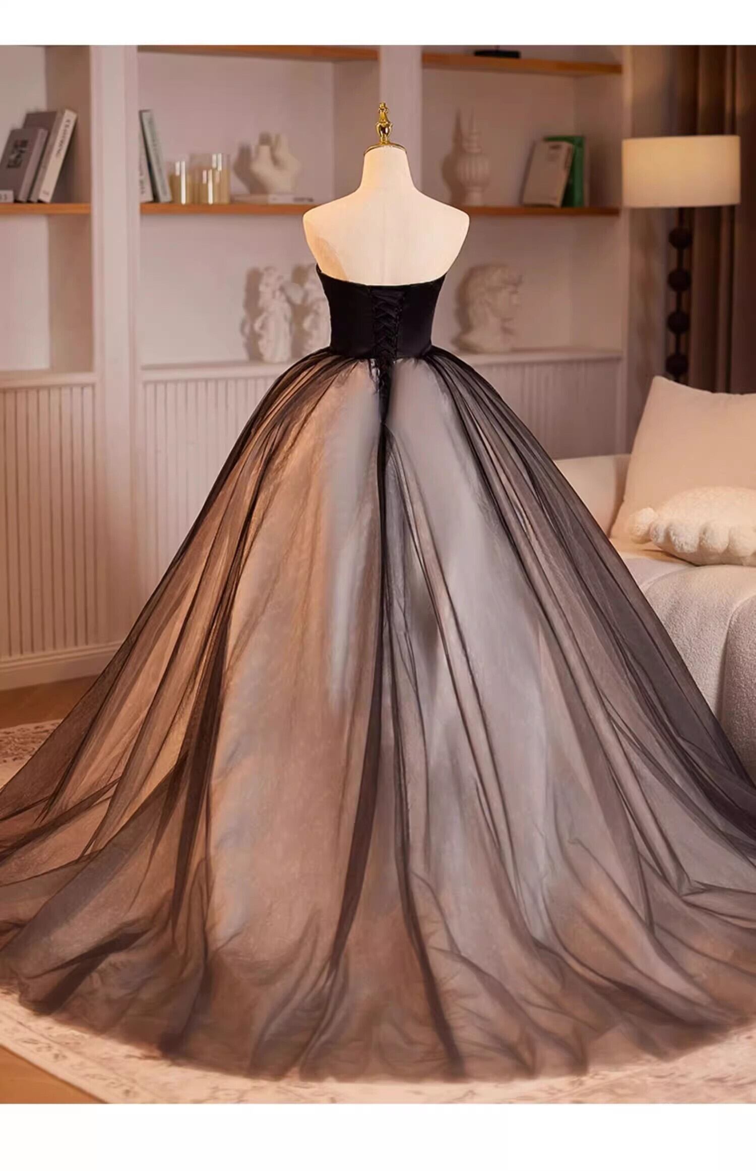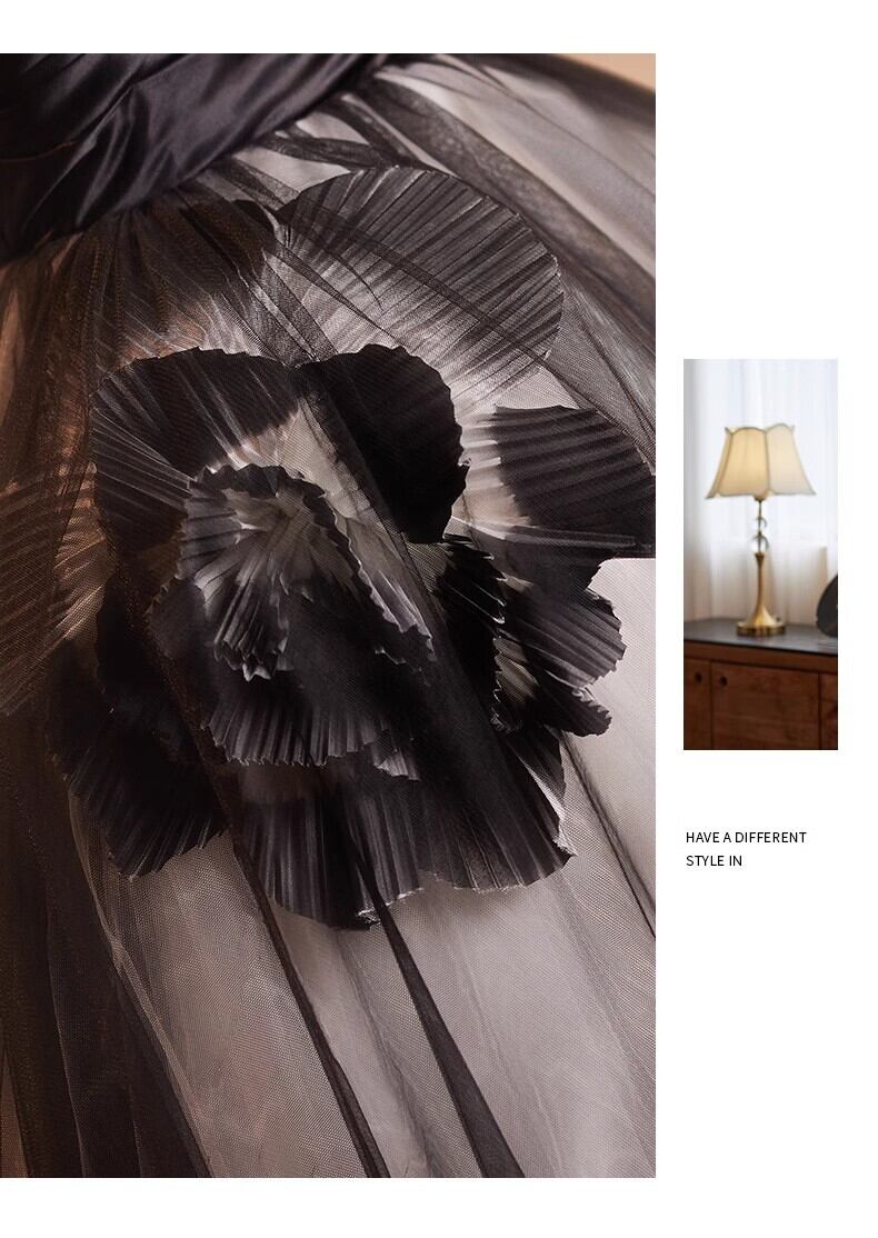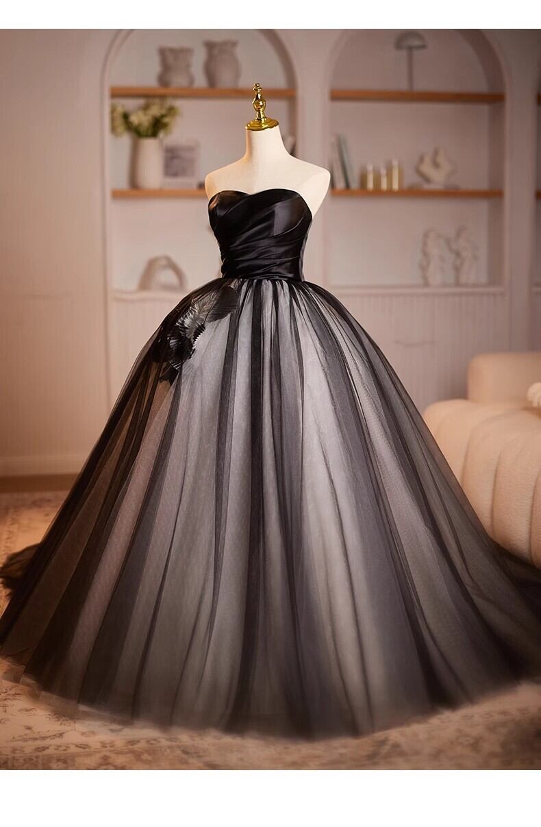 上品!黒 ベアトップ バラ カラードレス プリンセスライン フレアスカート 【色変更可能】ボリュームドレス