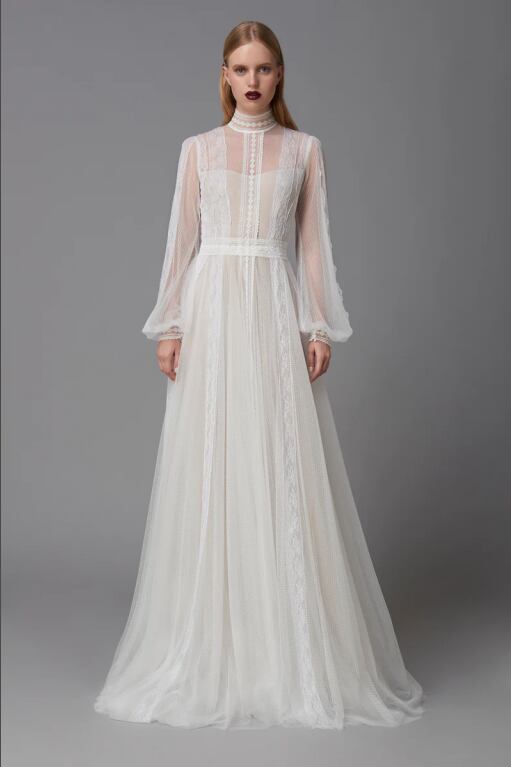 上品!アメリカ風 パーティードレス ロングスリーブ ハイネック シースルー ダンスドレス ミディアムドレス イブニングドレス
