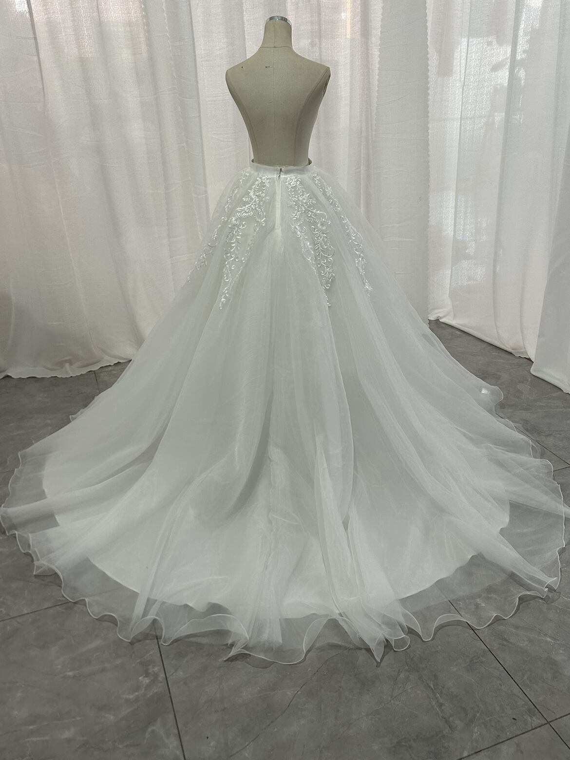 美品!輝きな光彩を放つ 裾に繊細レースをあしらった 上質オーガンジー オーバースカート ウエディングドレス 演奏会/音楽会