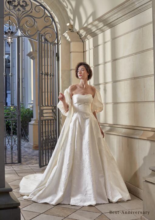 上品!ヨーロッパ風 ウエディングドレス パーティードレス ジャカード生地 ビスチェスタイル 美しいボディライン Aラインドレス