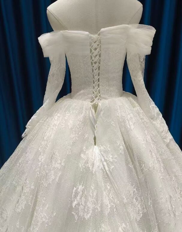 上品!オフショルダー ウエディングドレス 3D立体レース刺繍 プリンセスライン2次会 前撮り 花嫁 挙式