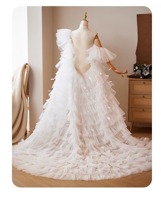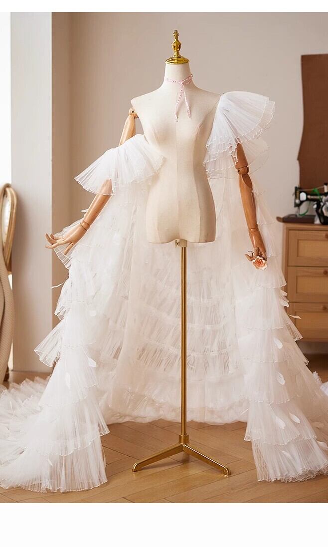 上品!オフホワイト ショール 柔らかく重ねた ソフトチュール 2次会 前撮り 花嫁 挙式