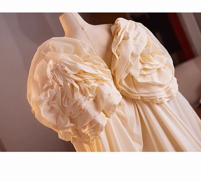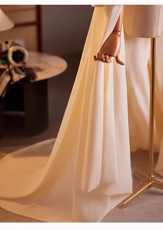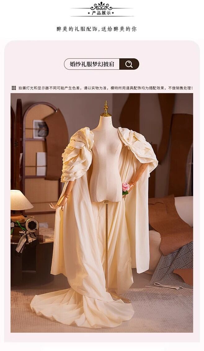 高品質! シャンパン色 豪華 袖 光沢サテン ポンチョ ウエディングドレス 華やかなトレーン 2次会 前撮り 花嫁 挙式