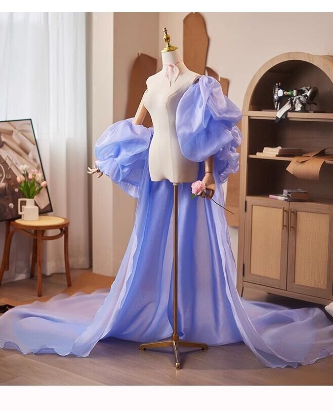 上品! 薄青 豪華 袖 ショール 柔らかく重ねた ソフトチュール 2次会 前撮り 花嫁 挙式