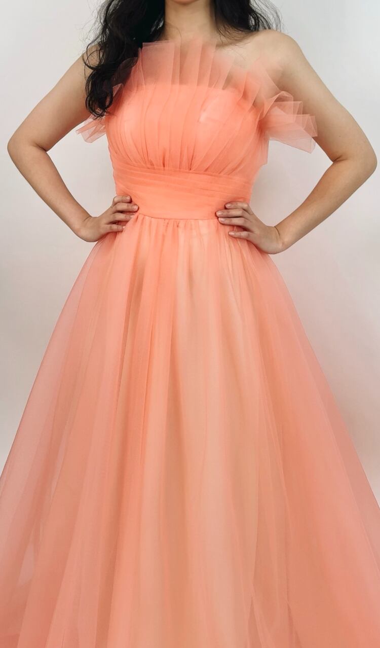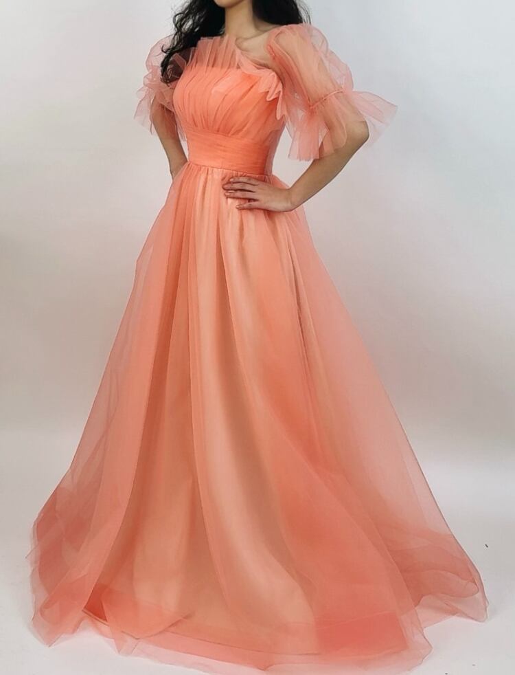 上品!オレンジ カラードレス 付け袖 エンパイアライン チュールドレス ロング ダンスドレス パーティードレス【色変更可能】