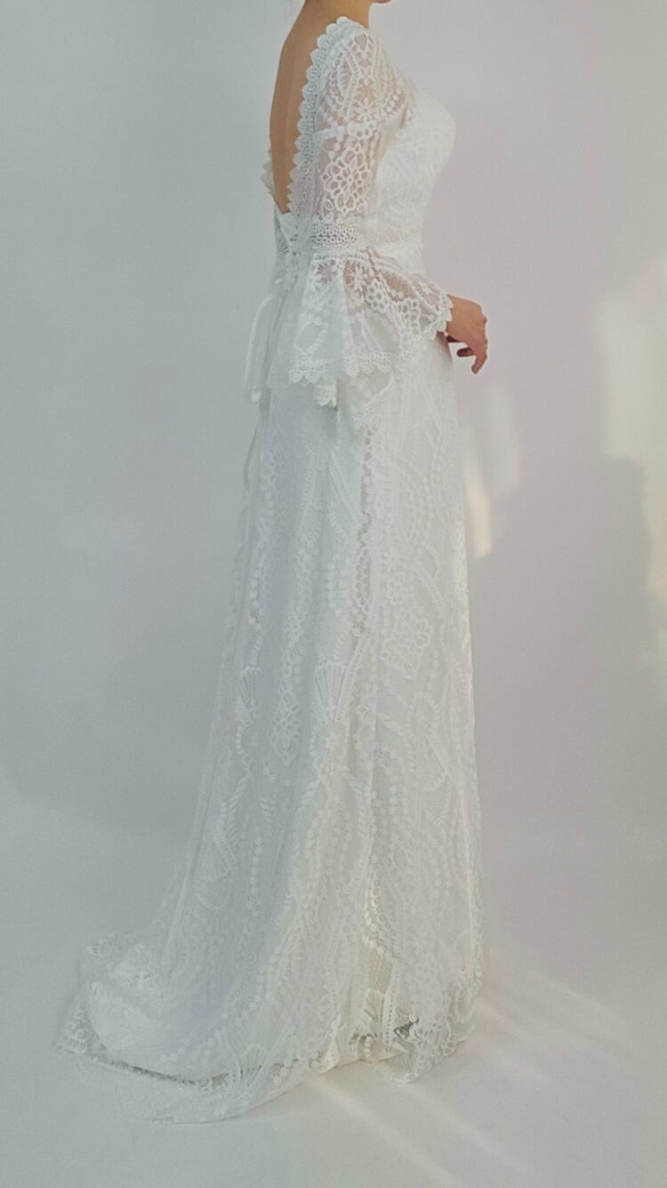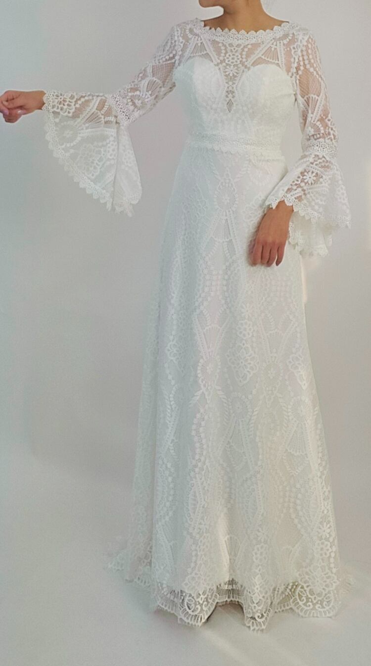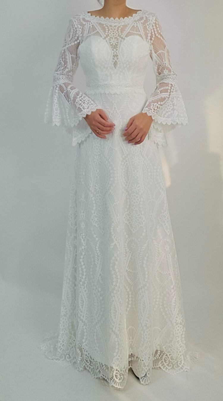 美品!ウエディングドレス 総レース ロングスリーブ フレア袖/ラッパ袖 パーティードレス 結婚式/前撮り【オーダーメイド】