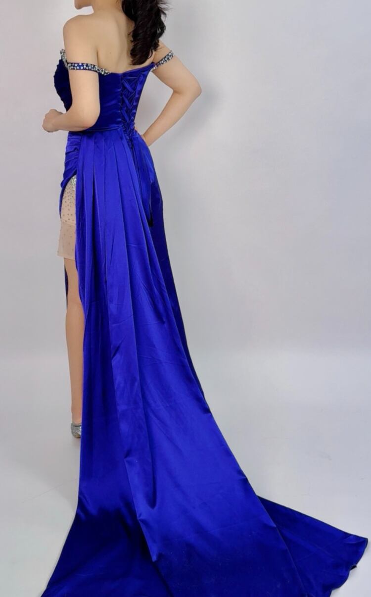 美品!濃いブルー ネイビーブルー カラードレス キャミソール ビーディング スリット イブニングドレス パーティードレス【色変更可能】