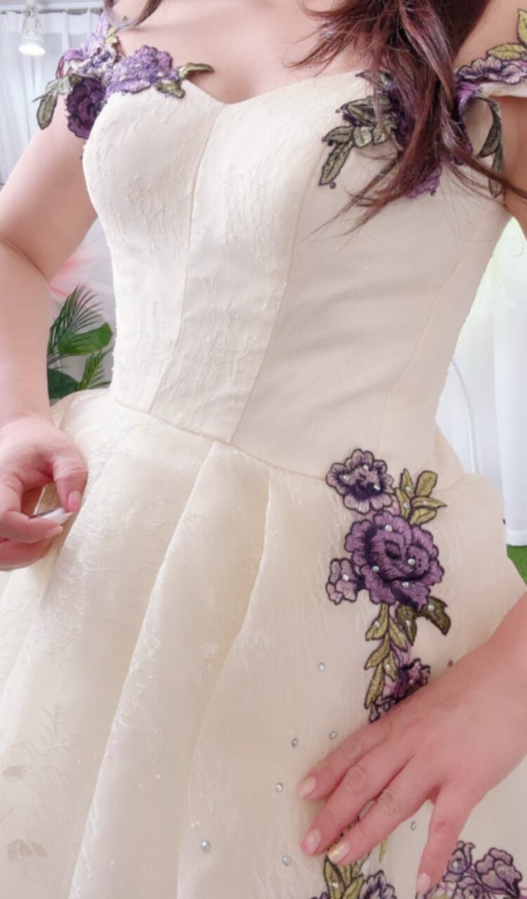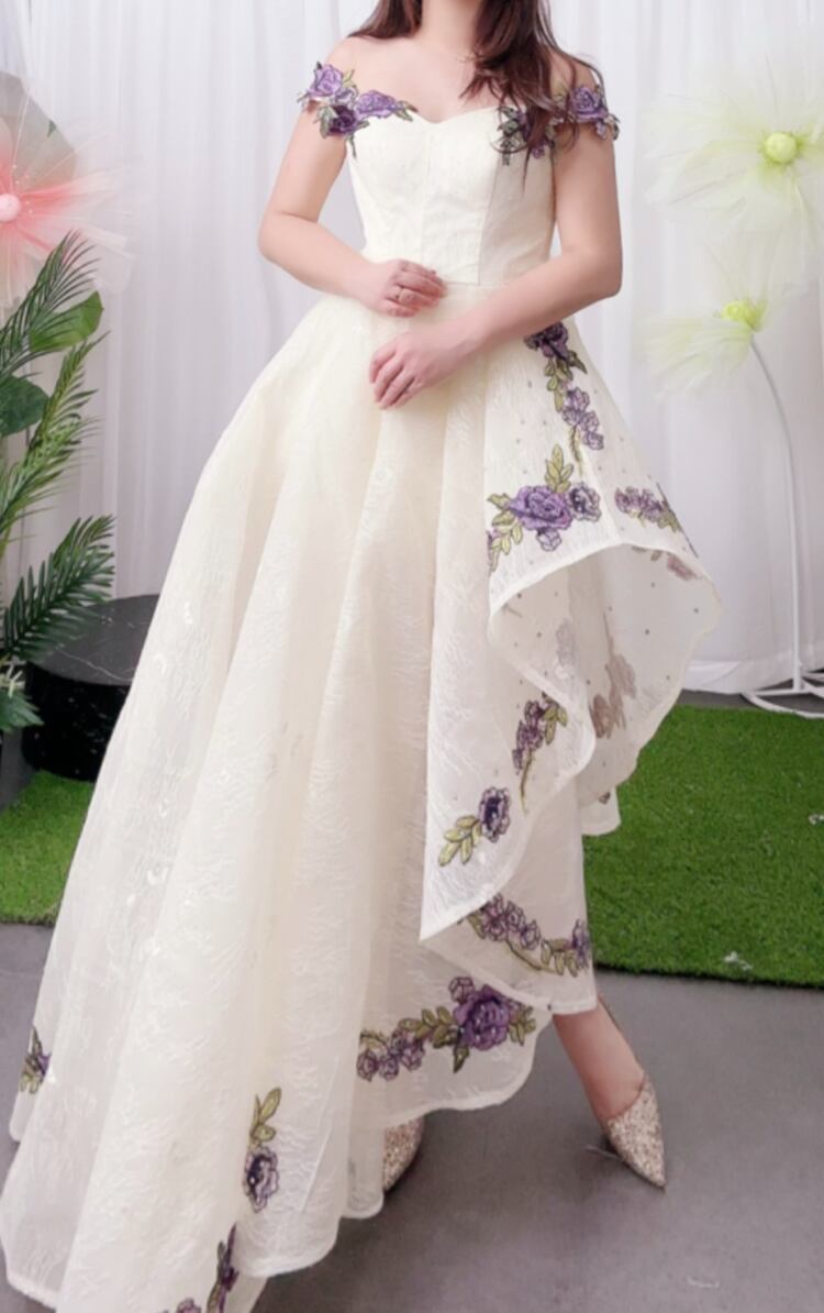 美品!ウエディングドレス 鮮やかな花刺繡 オフショルダー フィッシュテール Aラインドレス 結婚式/前撮り【オーダーメイド】