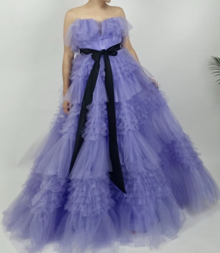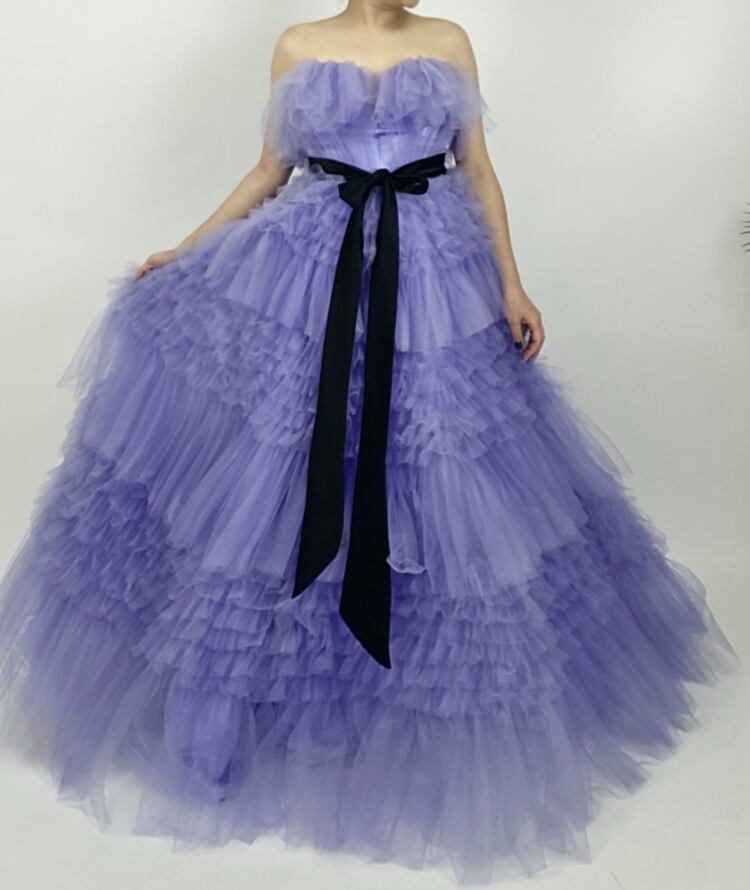 美品!パープルブルー/紫 カラードレス ティアードドレス フリルドレス チュールドレス イブニングドレス パーティードレス【色変更可能】