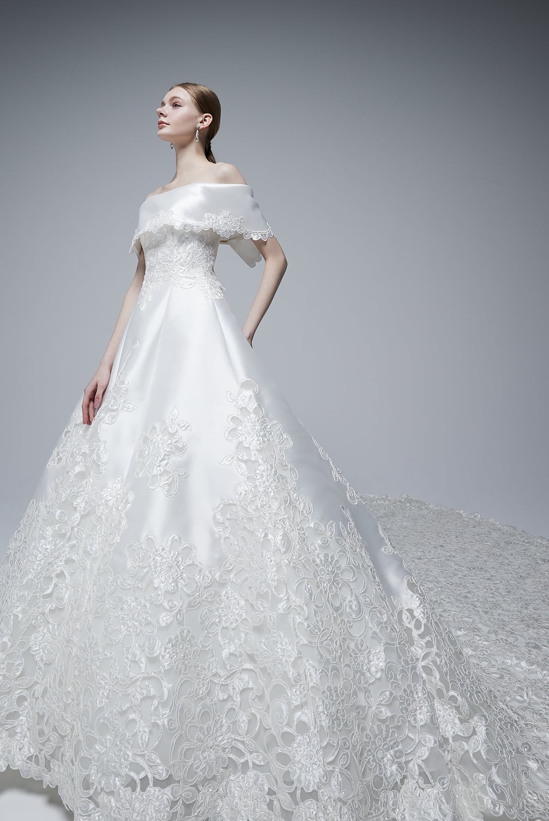 美品!ウエディングドレス 総レーストレーン 繊細レース オフショルダー プリンセスライン 結婚式/前撮り【オーダーメイド】