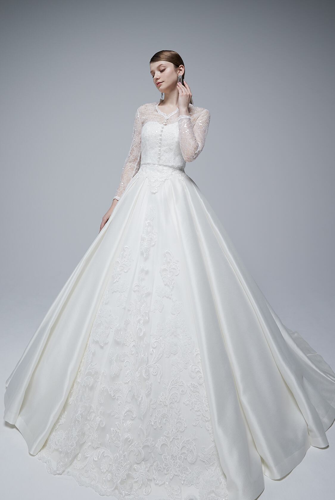 美品!ウエディングドレス 総レーストレーン 繊細レースボレロ ロングスリーブ プリンセスライン 結婚式/前撮り【オーダーメイド】