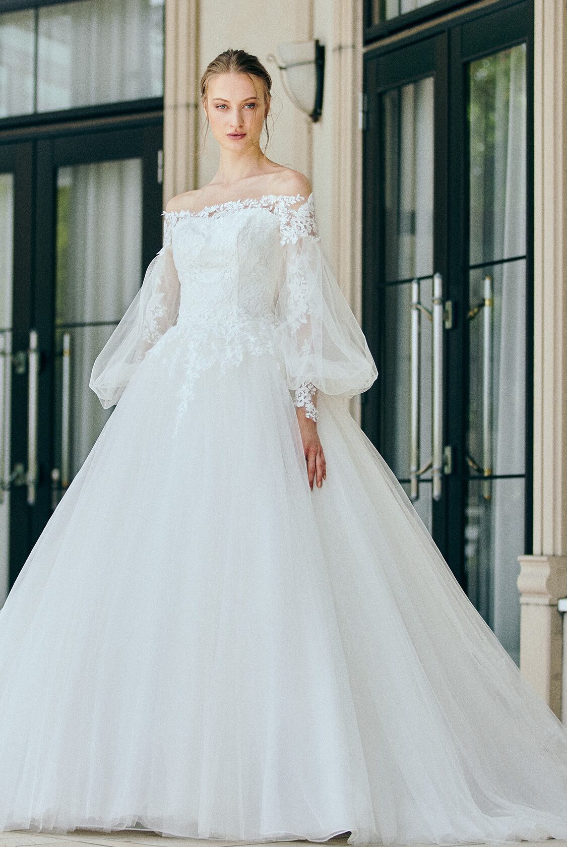 美品!2WAYウエディングドレス パフスリーブ 繊細レースボレロ オフショルダー フェミニン 結婚式/前撮り【オーダーメイド】