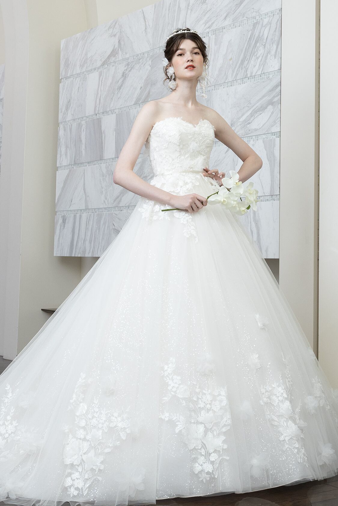 美品!ウエディングドレス 取り外しロングスリーブ 繊細レースドレス 花モチーフ刺繡 フェミニン 結婚式/前撮り【オーダーメイド】