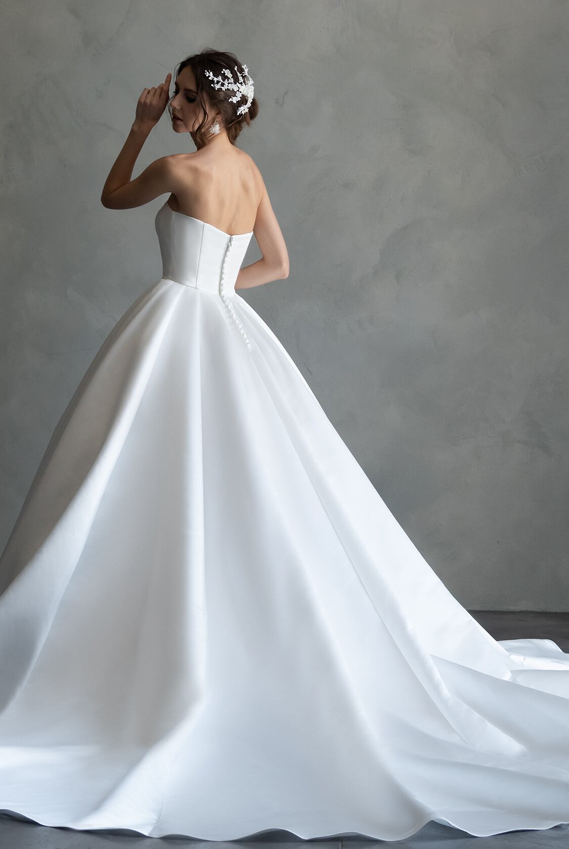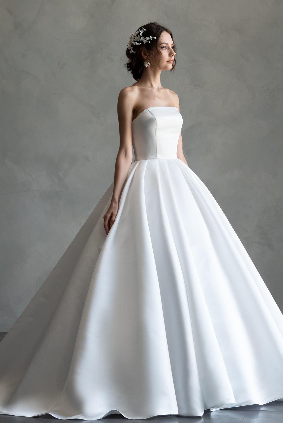 美品!ウエディングドレス ベアトップビスチェ サテンドレス フェミニン Aラインドレス 結婚式/前撮り【オーダーメイド】