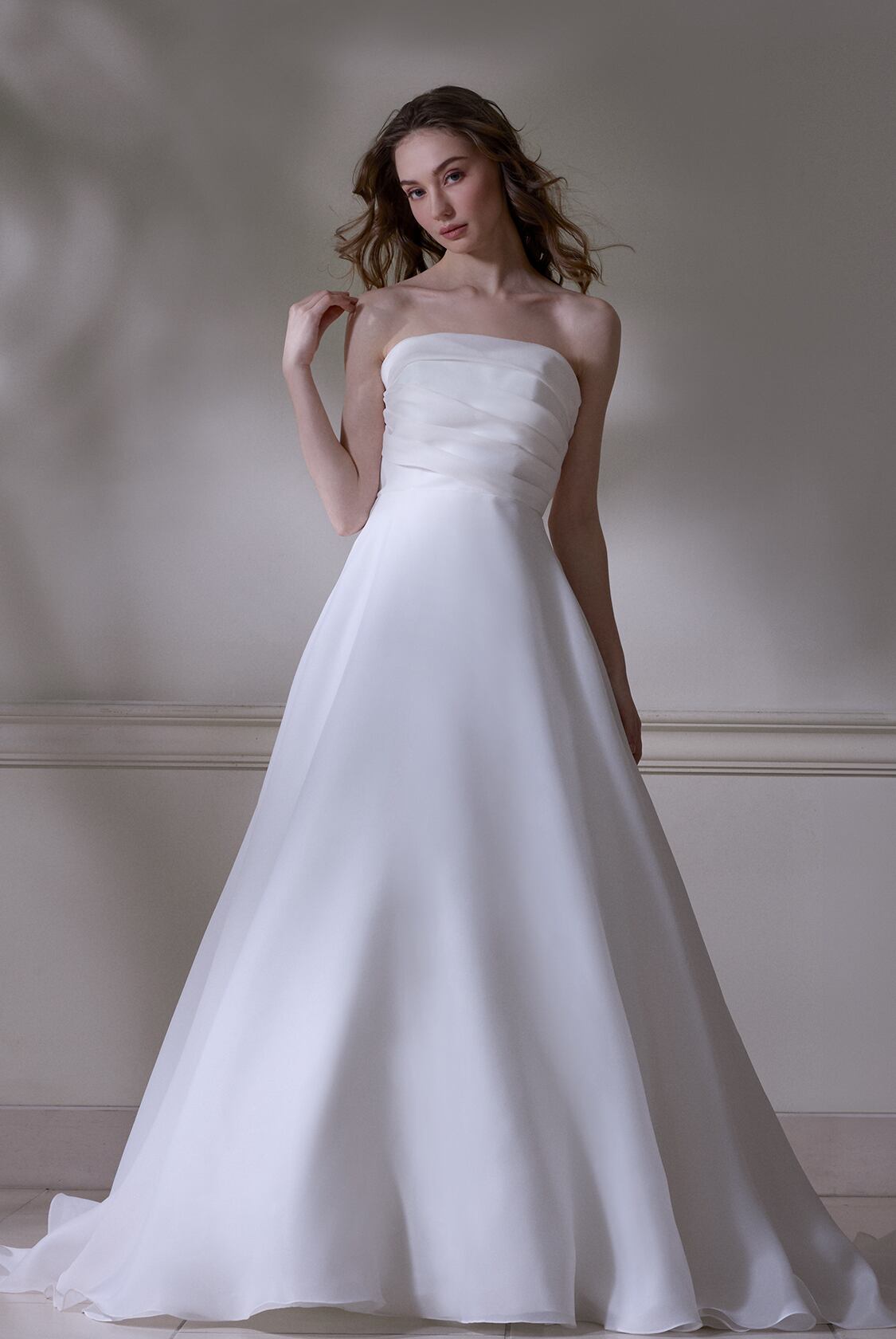 美品!ウエディングドレス フェミニン Aラインドレス シルクオーガンジー 美しいボディライン 結婚式/前撮り【オーダーメイド】