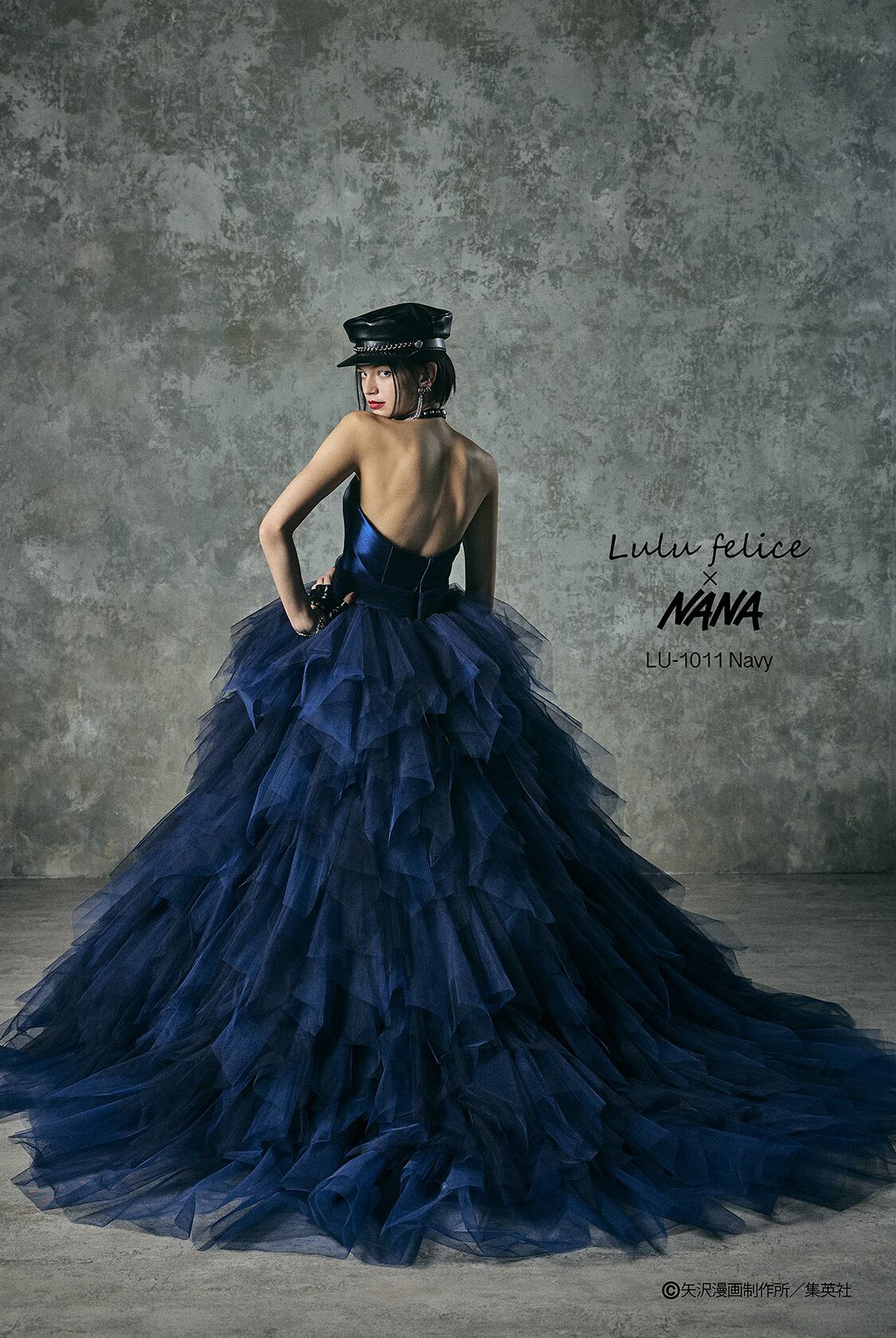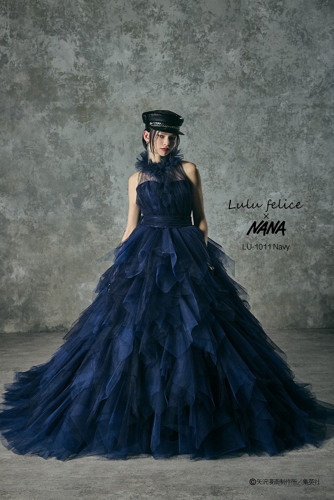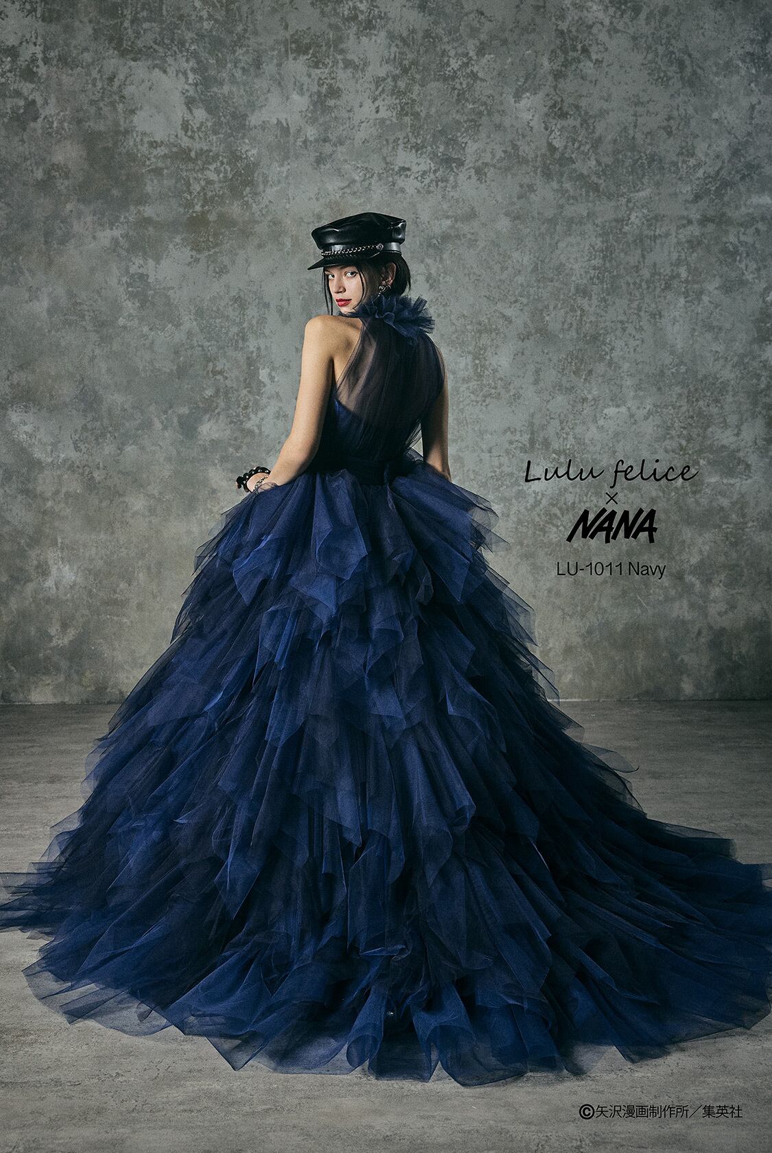 美品!ネイビーブルー カラードレス ホルターネック フリルドレス チュールトップス ボリュームドレス コンサート フェミニン イブニングドレス【色変更可能】