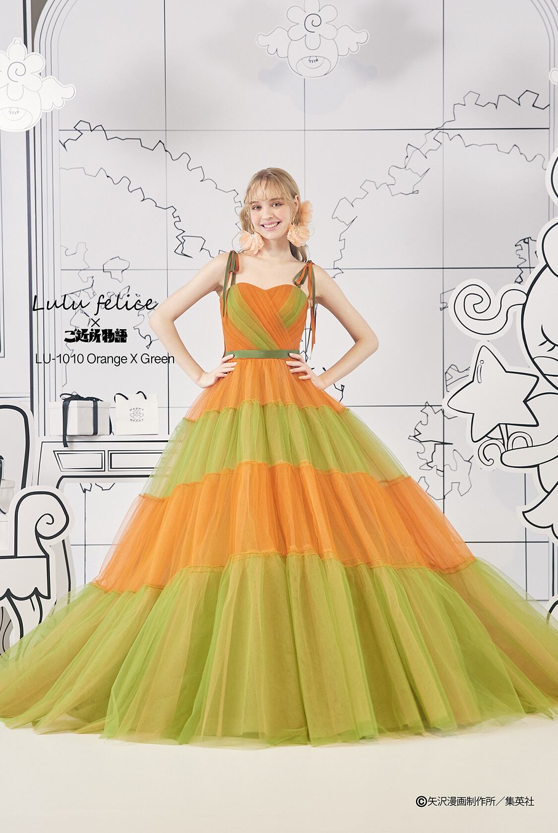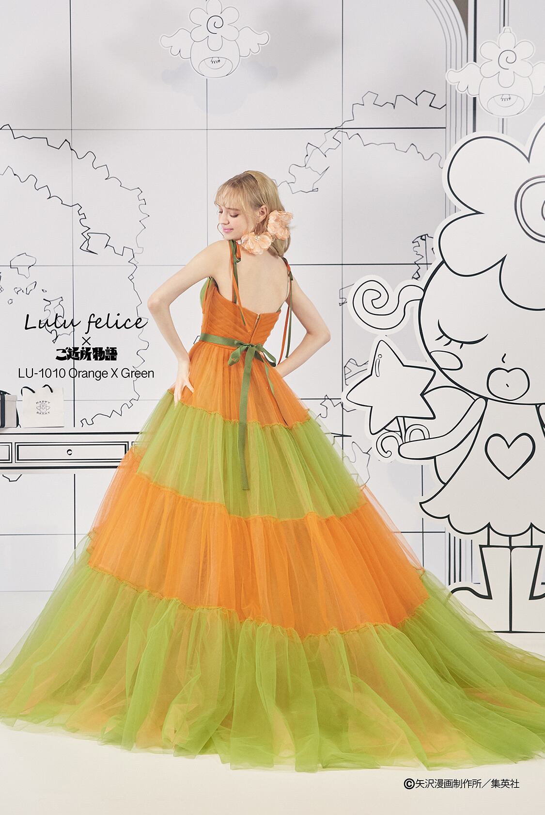 美品!オレンジ/グリーンのバイカラー カラードレス キャミソール チュールドレス フェミニン パーティードレス イブニングドレス 演奏会【色変更可能】