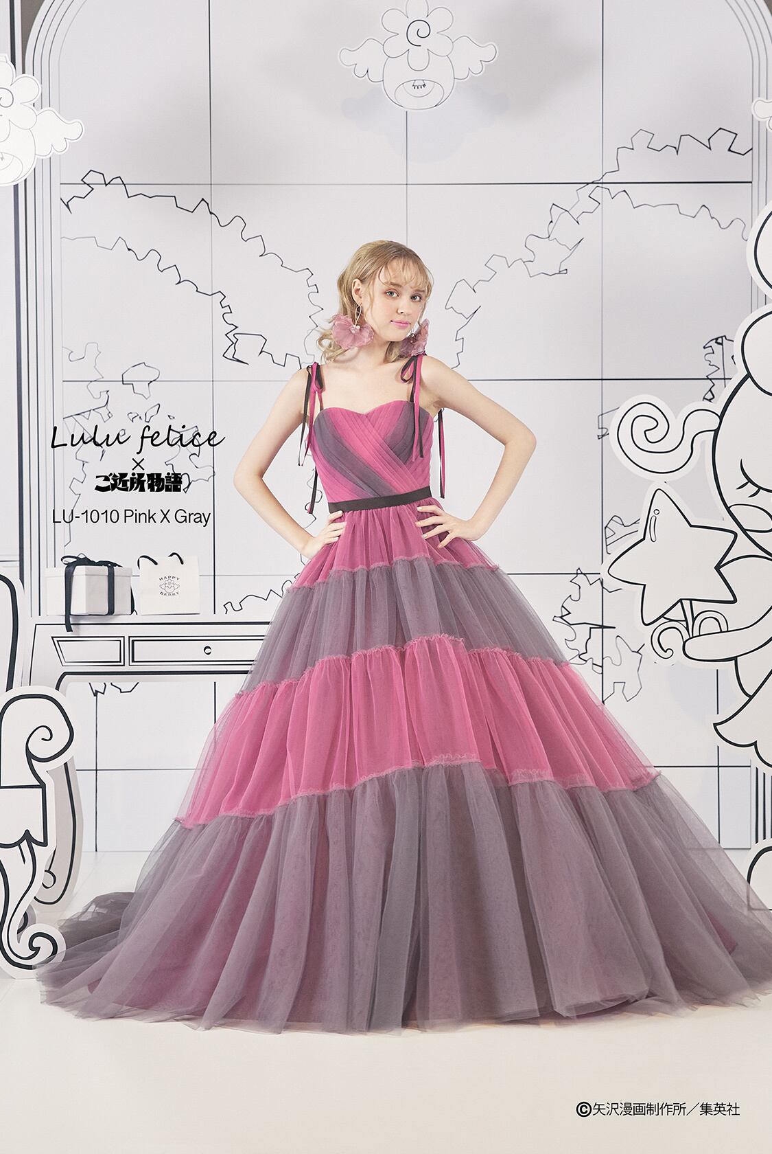 美品!グレー/ピンク紫のバイカラー カラードレス キャミソール チュールドレス フェミニン パーティードレス イブニングドレス 演奏会【色変更可能】