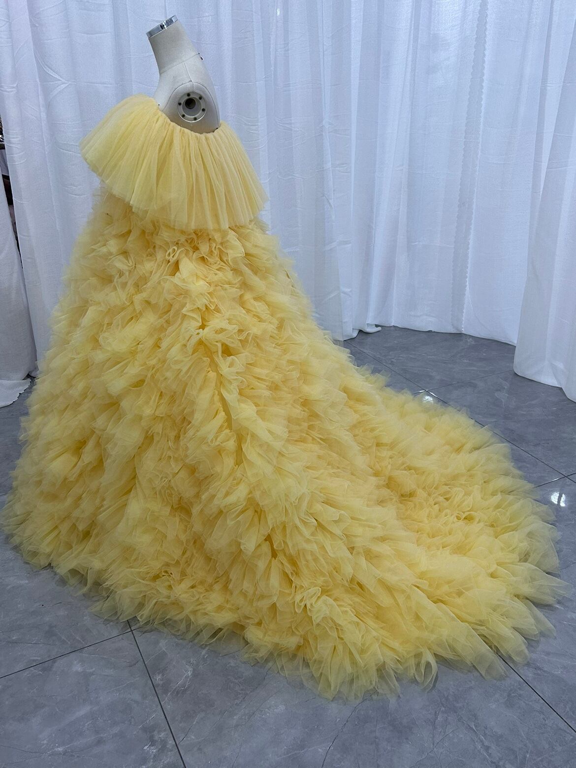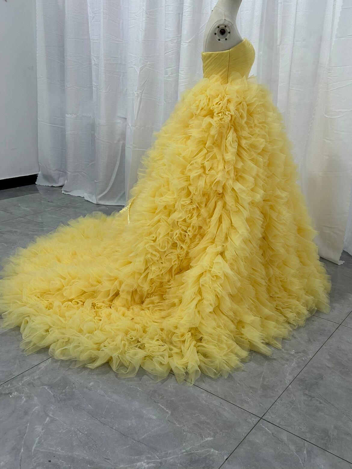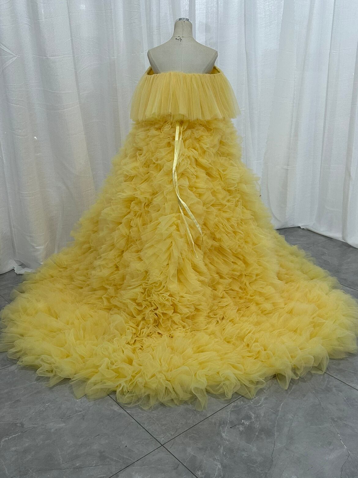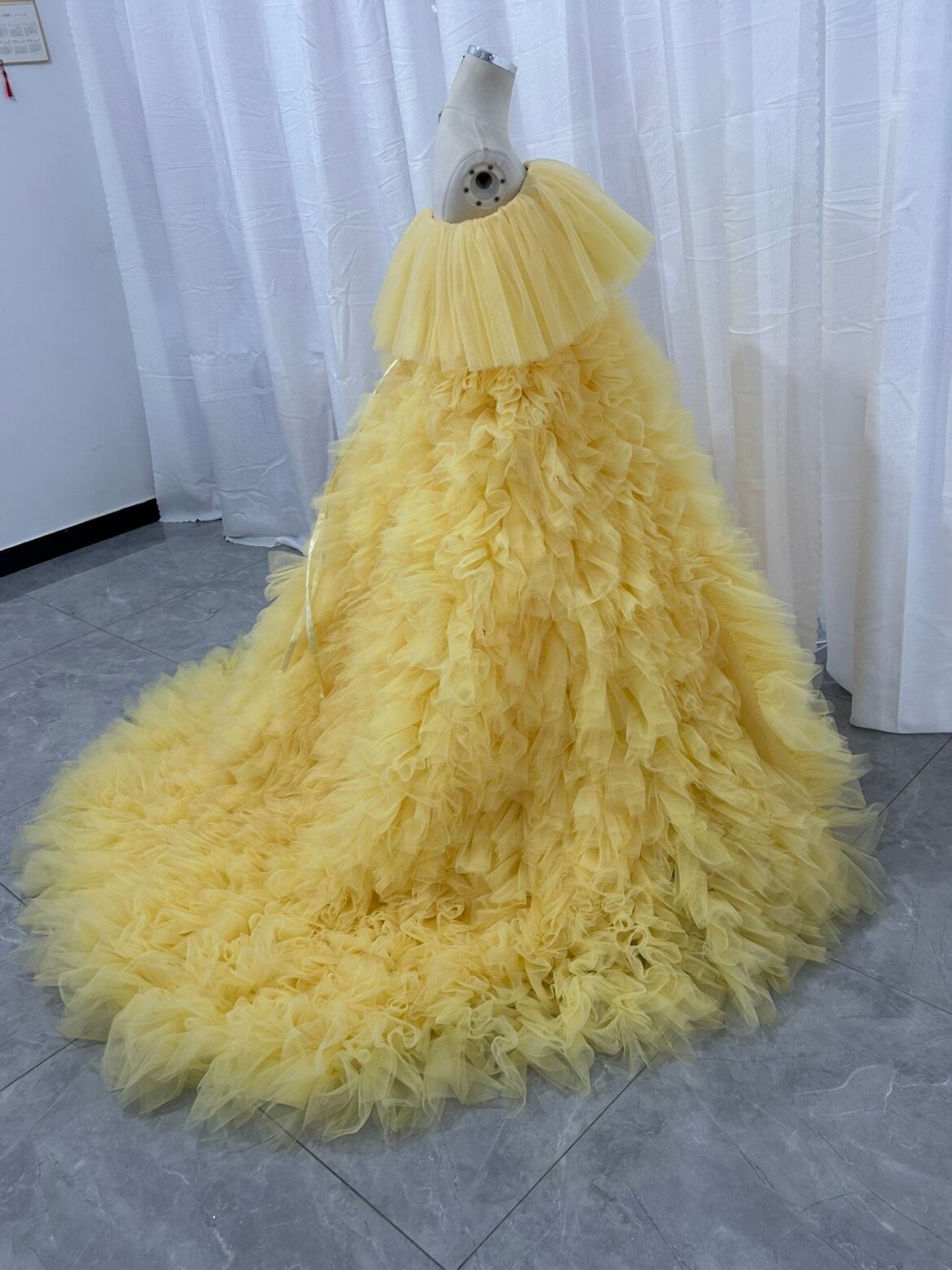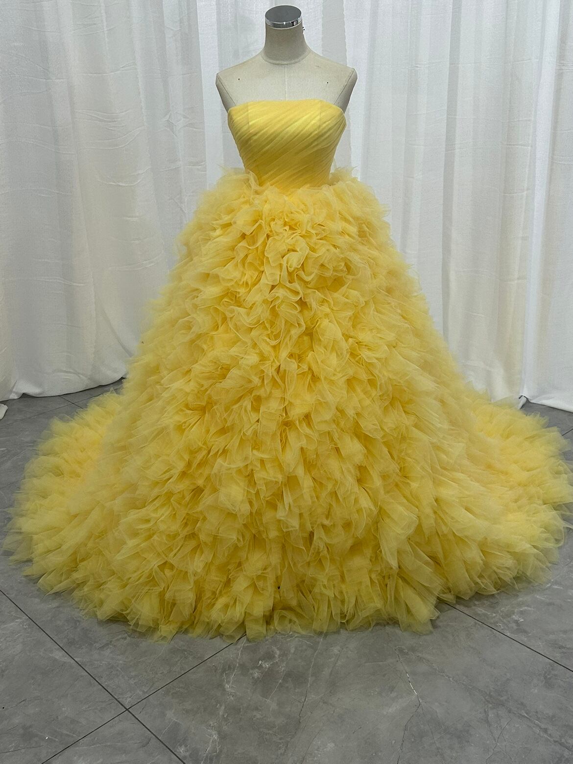 送料無料!パステルイエロー カラードレス ソフトチュール もこもこドレス ボリュームたっぷり/挙式/前撮り/結婚式