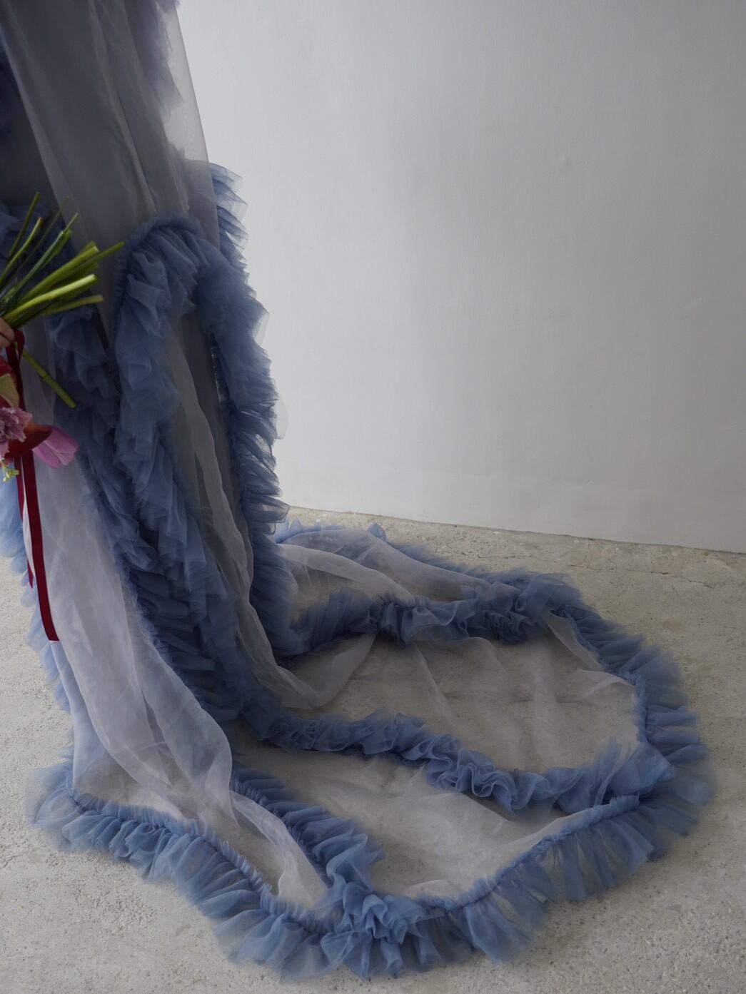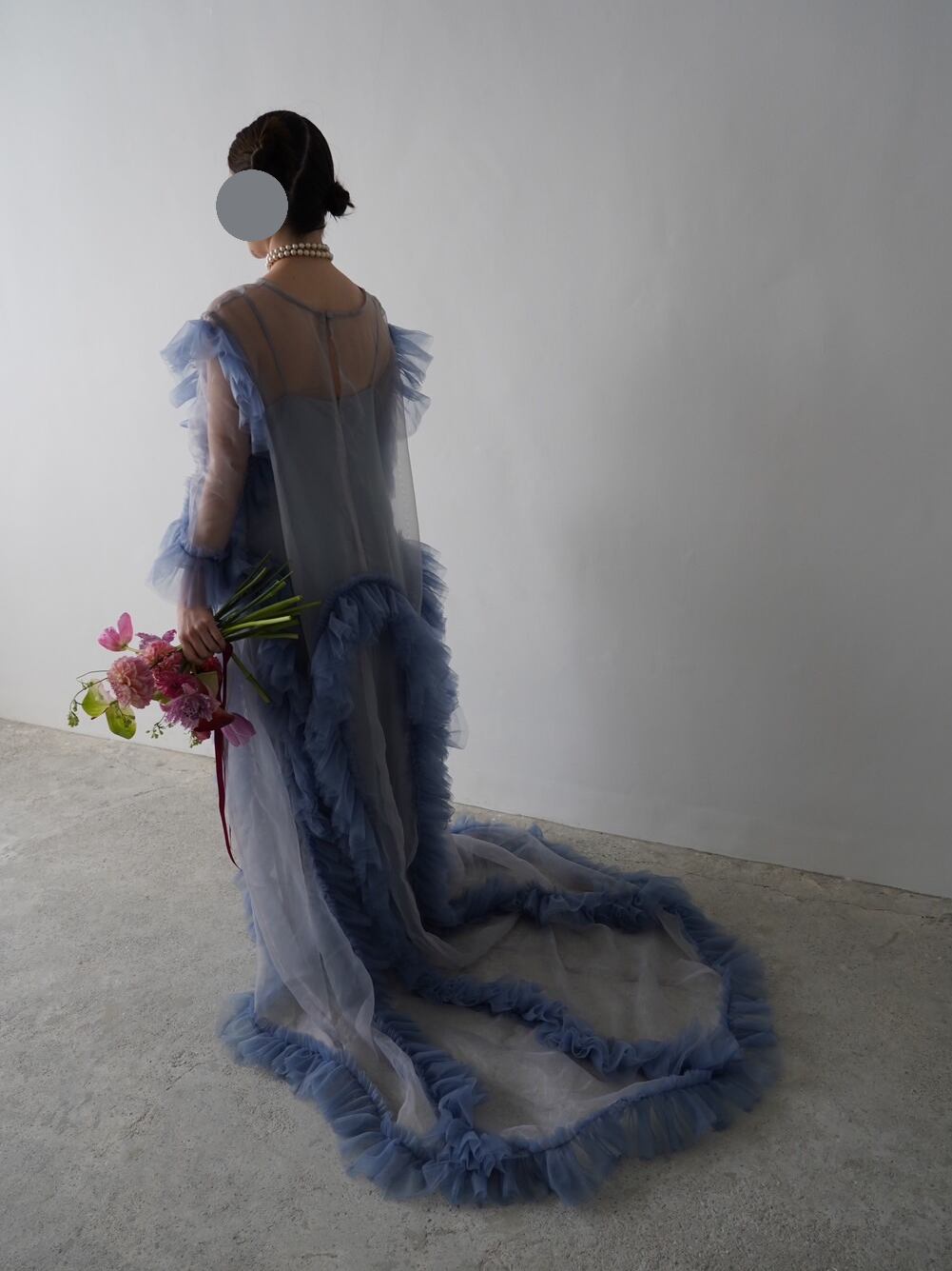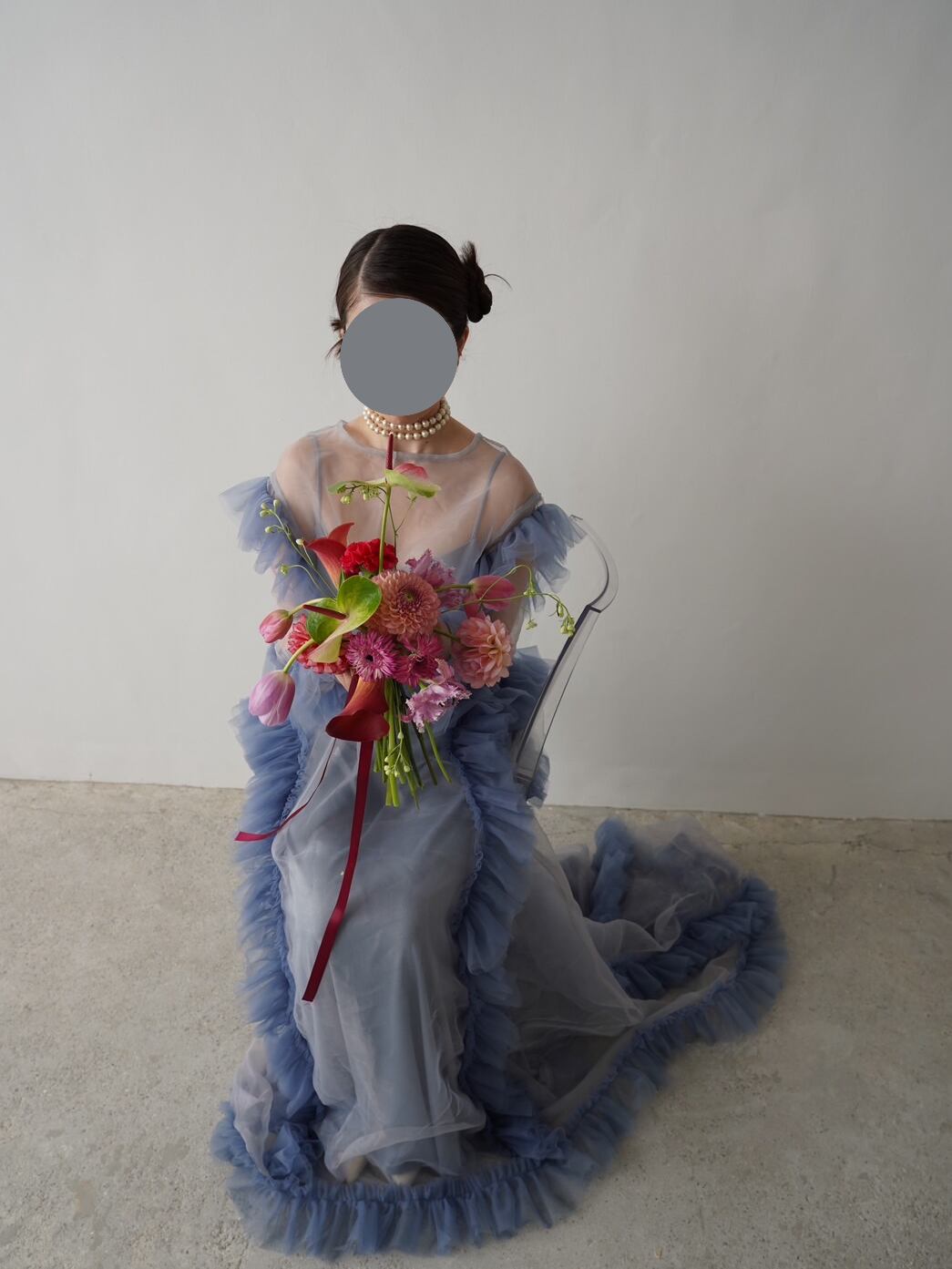 実例写真! 爽やかで優しいブルーオンショルダードレス+ケープ風ドレス 抜群のおしゃれ見え 前撮り結婚式