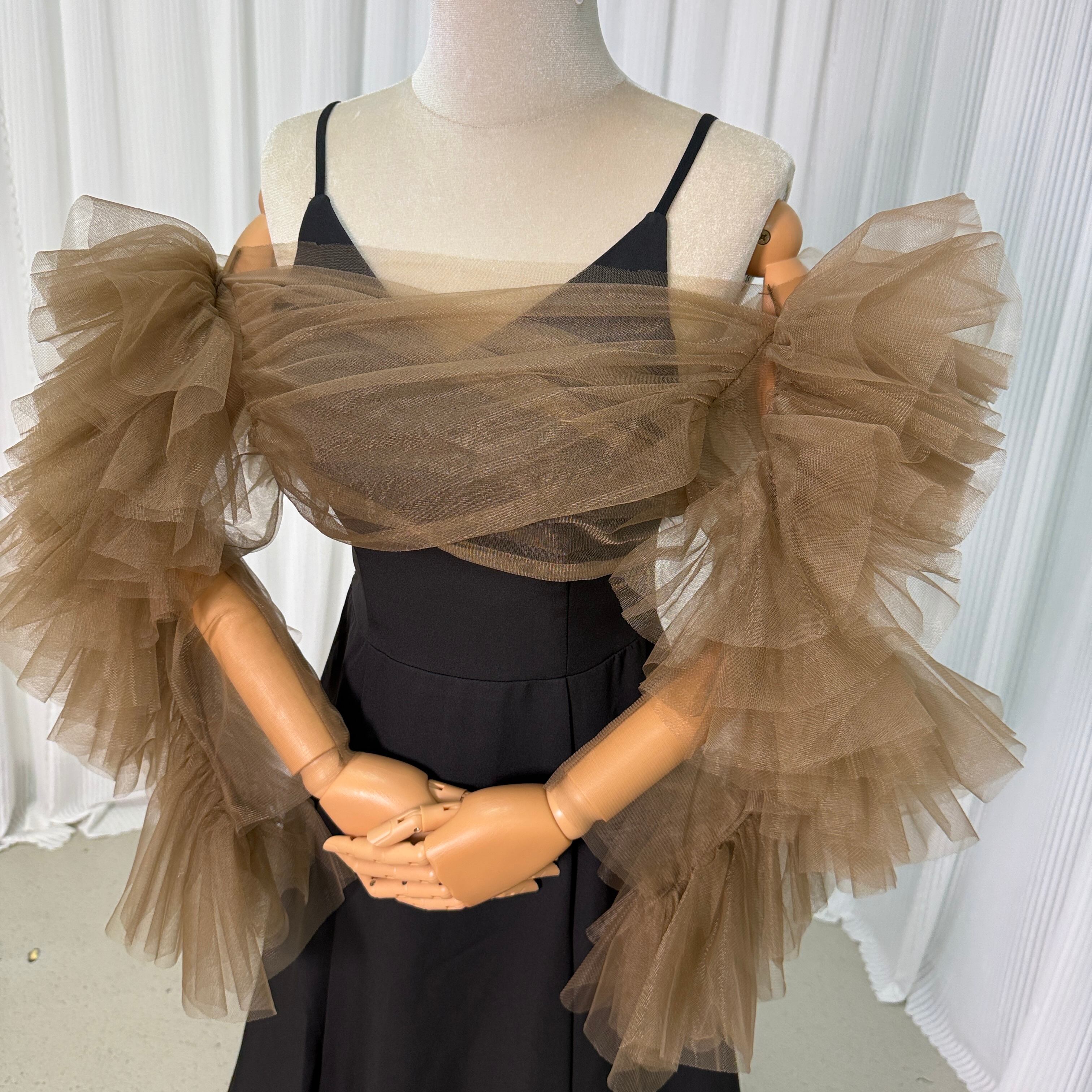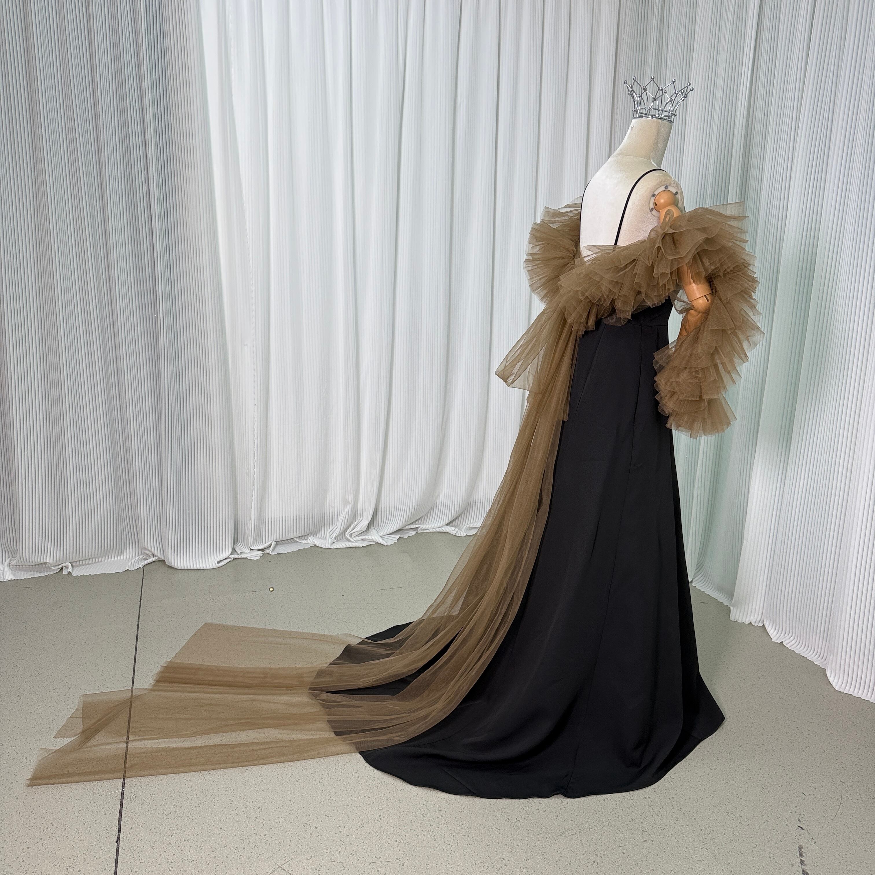 送料無料! 抜群のおしゃれ見え 黒 キャミソール ショール パール 華やかなトレーン+ソフトチュール トップス 2点セット 結婚式