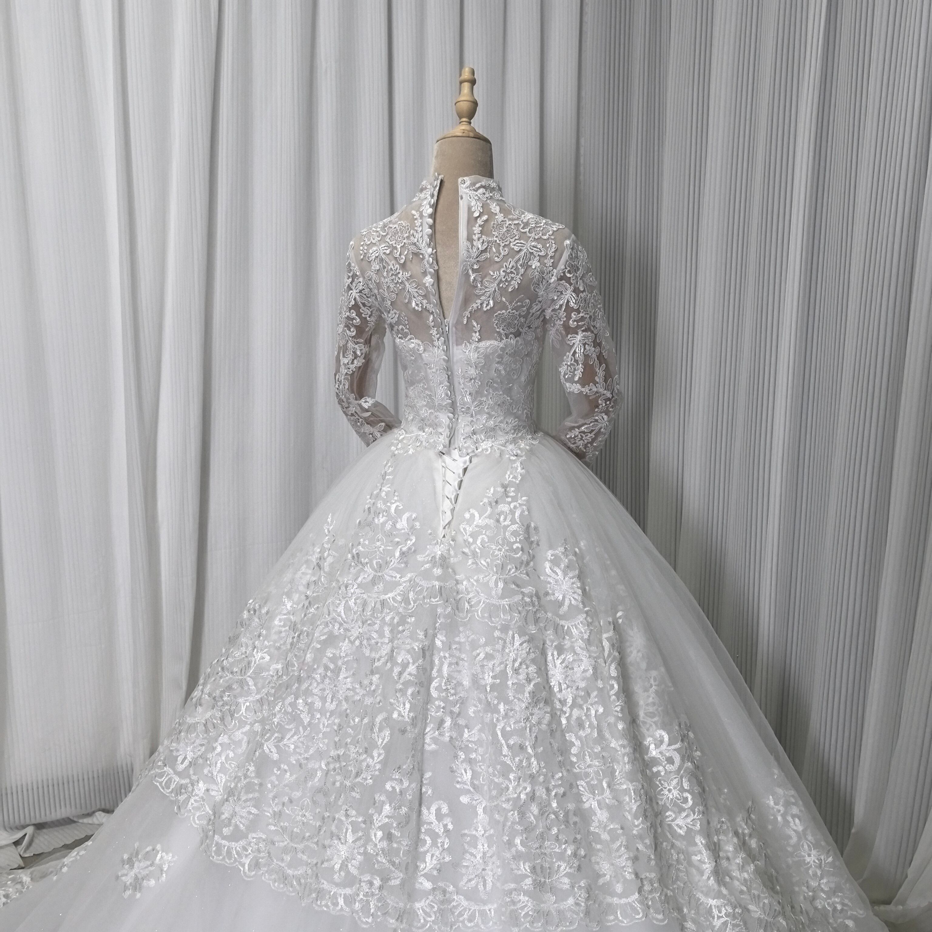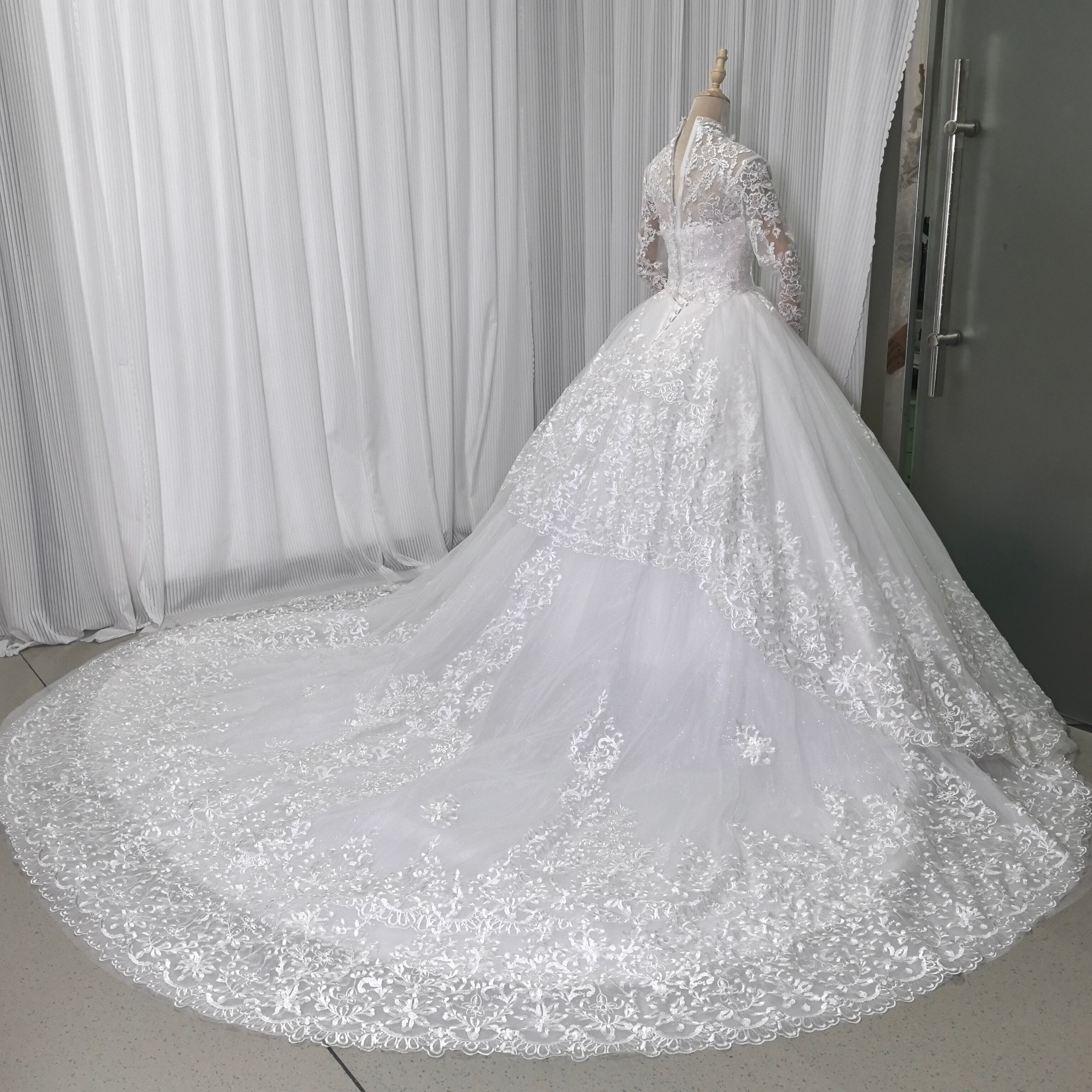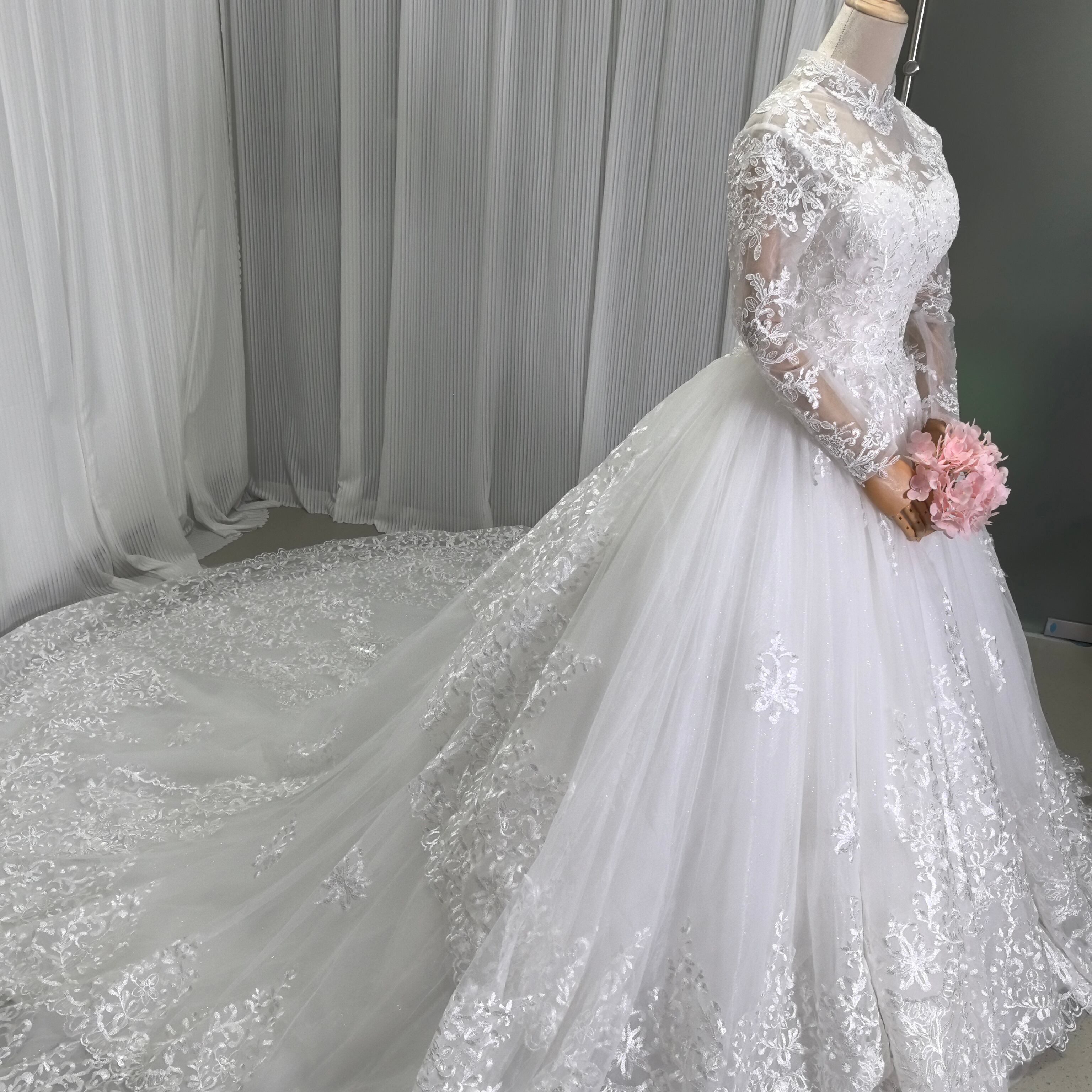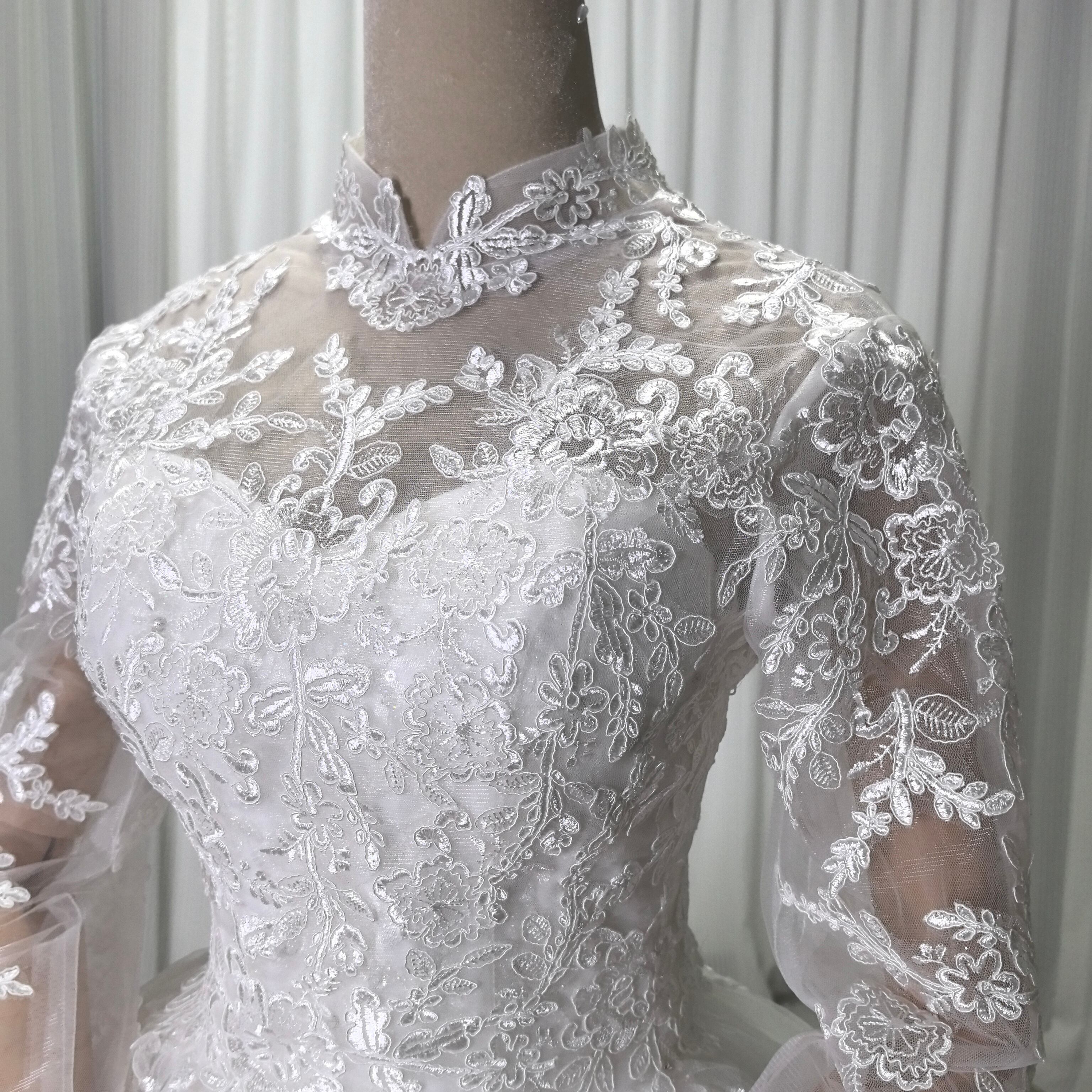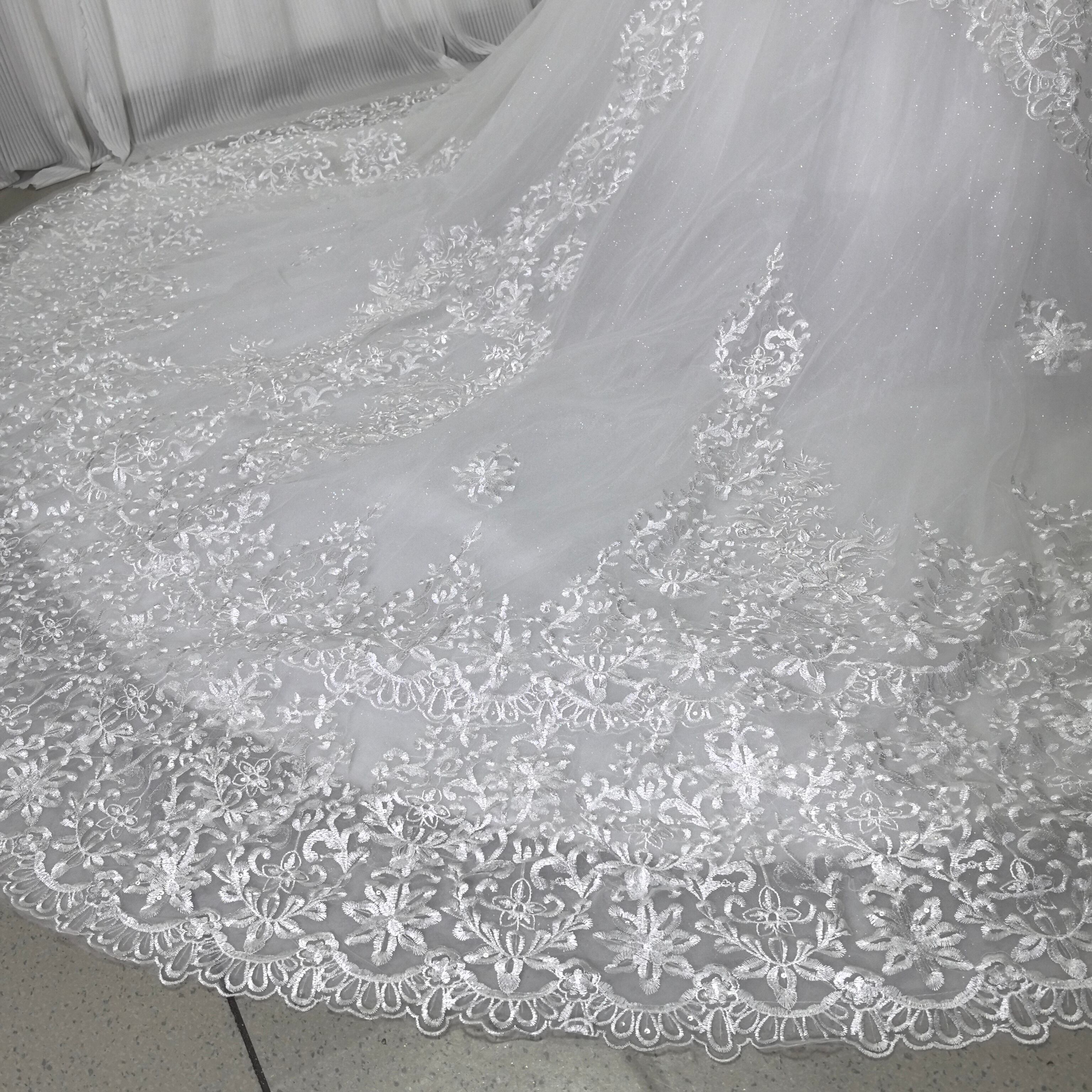 送料無料!オフホワイト レース刺繍たっぷり ウエディングドレス 華やかなトレーン+ 3D立体レース刺繍トッ トップス
